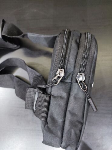 Crna torbica za struk / crossbody “fanny pack”. - Materijal: koža - Više pregrada sa rajsferšlusima: jedan glavni odeljak preko cele dužine, prednji džep sa patent zatvaračem i dodatni manji džep...