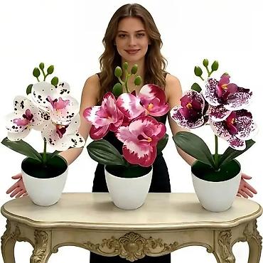 Dekorativne veštačke orhideje u saksiji – set aranžmana za enterijer 1