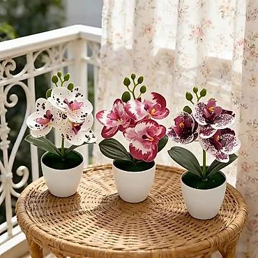 Dekorativne veštačke orhideje u saksiji – set aranžmana za enterijer 1 kom
