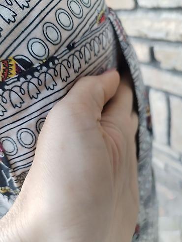 Haljina plisirka zelena sa sarenjm cvetovima siroka.Oznacena sa S ali je sira.Nema postavu ima i kais dodatno od istog dezena. Obim haljine je isti od 110 do 150 puna elastina. Duzina 95. Kao nova ...
