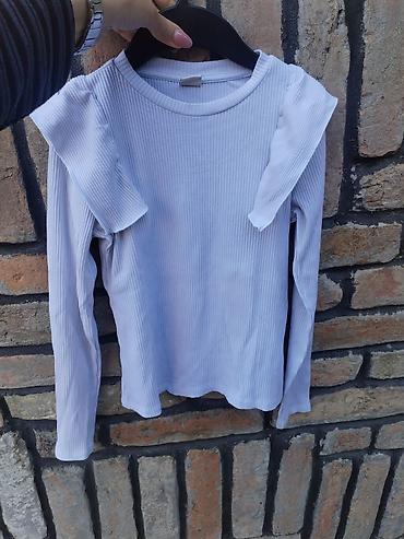 Bela dečja majica za uzrast 5–6 godina u super stanju. Kratki rukavi sa volanima, okrugao izrez. Napred ukras sa dve srca od sitnih srebrnih nitni/kamenčića. Materijal je mekan i lagan, prijatan za...