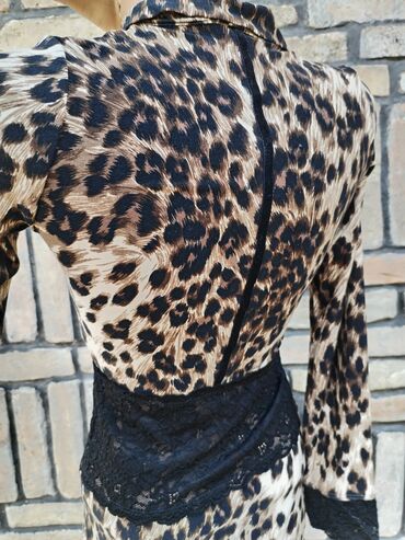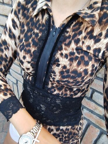 Tunika tigrastog desena sa vezenom cipkom, Sa dugim prozirnim rukavima. Na rukavima i u donjem delu tunike ima lastis. Na prednjoj strani ima vezenu cipku u tamno braon boji. Zbog blica i osvet...250 RSD