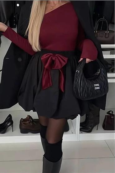 - Boje: crna suknja sa bordo mašnom; bordo suknja sa crnom mašnom