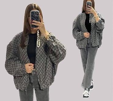 - Kroj: oversize/bomber silueta sa spuštenim ramenima i blago puf rukavima
