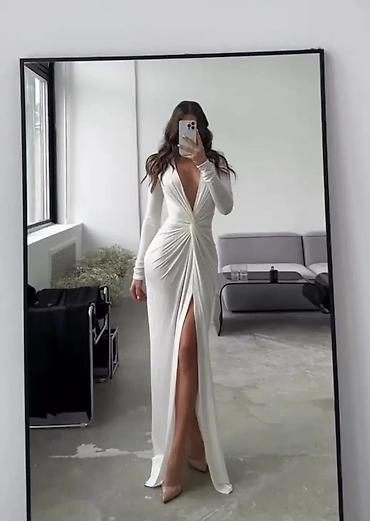 🔥Elegantna duga haljina na pertlanje oko vrata - Kroj: uska silueta koja prati liniju tela, duga do poda, sa suptilnim šlep efektom - Gornji deo: korpica sa čvor/uvrt detaljem i dubokim dekolteom,...