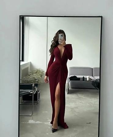 Elegantna večernja haljina n bogatoj boji fuksije/višnje. - Kroj: uska silueta koja prati liniju tela, sa blago nabranym korpusom radi boljeg prijanjanja. - Materijal: prozirna mrežasta osnova ...