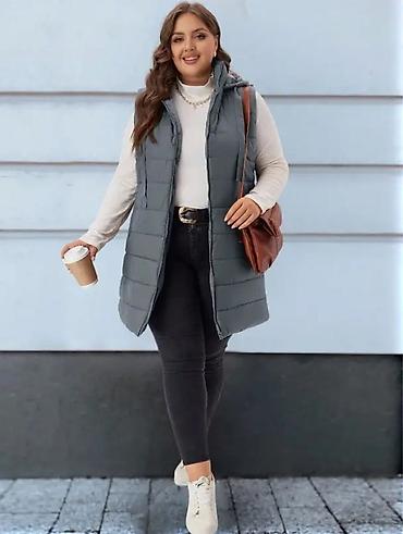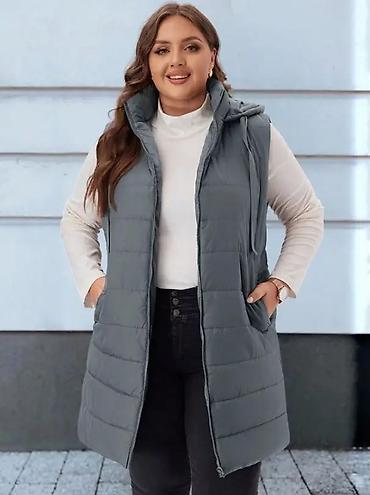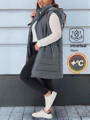 Ženska dugačka postavljena prsluk-jakna sa kapuljačom