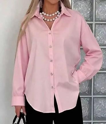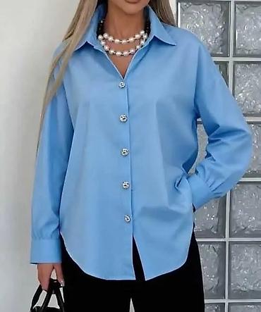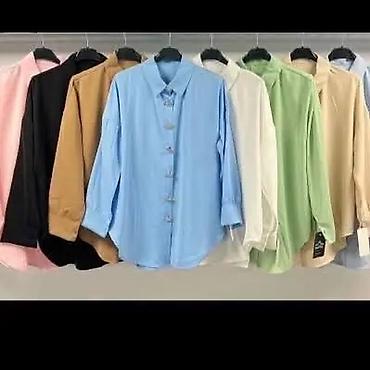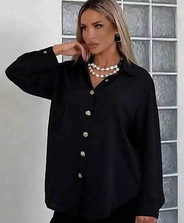 Ženska košulja dugih rukava, klasičnog kroja sa kragnom i kopčanjem na dugmad po sredini. Diskretno spuštena ramena, širi komforan kroj i zaobljen donji rub sa malim šlicevima sa strane. Manžetne sa jednim dugmetom. Dugmad dekorativna, sjajna.