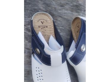 ženska klompa massage gel belo/teget| ženska klompa massage gel je veoma dugotrajna i izdržljiva odgoveđe kože i rado ćete je nositi napolju po lepom vremenu. Udobne i mekane klompe pružaju sjajan osećaj masaže nastopalima, a u isto vreme deluju opuštajuće i na celo telo.