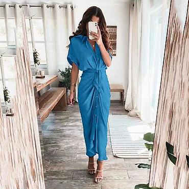 Ženska košulja-haljina midi dužine - Dizajn: košulja kroj sa kragnom