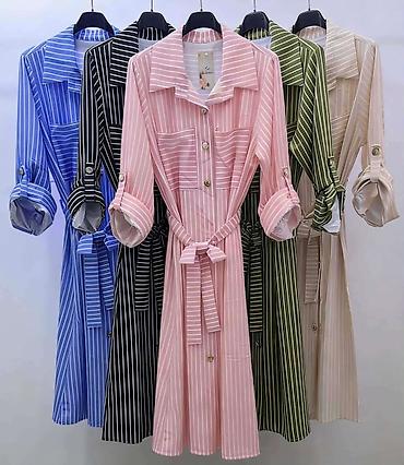 Košulja-haljina sa prugama - Model: midi košulja-haljina na kopčanje
