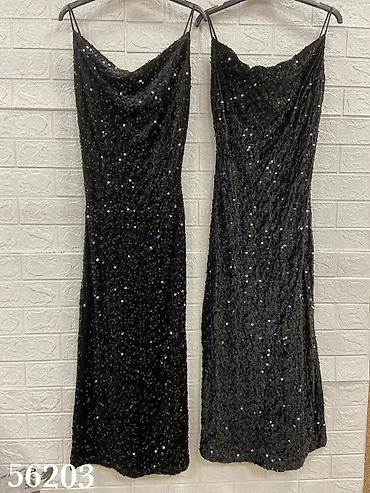 Elegantna crna midi haljina sa šljokicama - Materijal: elastična