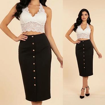 - Kombinovanje: idealna za elegantne i poslovne kombinacije uz košulju, top ili blejzer; odlično ide uz štikle ili čizme