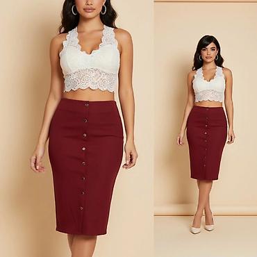 Uska suknja do kolena – bordo - Model: pencil/cevast kroj, dužina do