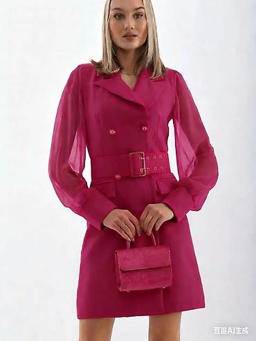 Elegantna mini haljina sa pojasom i duplim kopčanjem