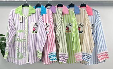 Ženska oversized košulja sa prugama i crtanim printom - Model: duga