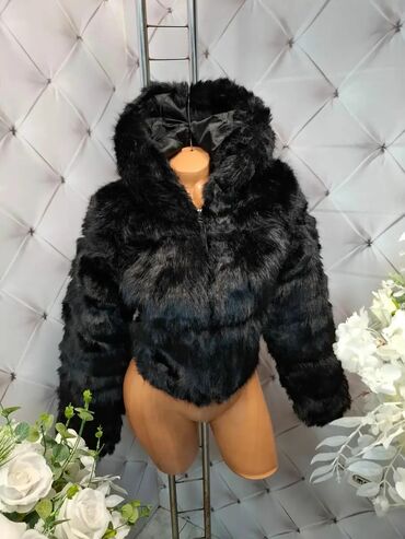 Kratka ženska jakna od veštačkog krzna sa kapuljačom
