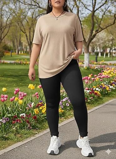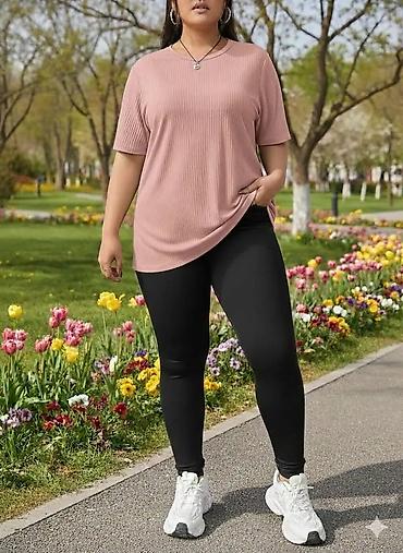 Ženska rebrasta oversized majica s kratkim rukavima