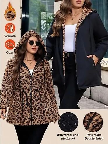 - Moderan animal print za efektan izgled, uz mogućnost diskretnog crnog stila okretanjem jakne.