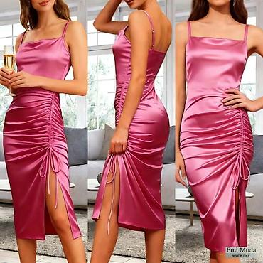 Saten haljina midi dužine sa efektom sjaja i prelepim padom. Model sa