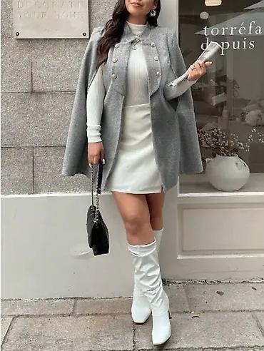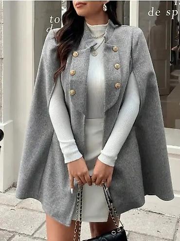 NOVO! Ženska pelerina/pončo sa kaišem Univerzalna za S do L Boje: Bež, Braon, Crna - Kroj: A-kroja sa širokim, talasastim padajućim krajevima i otvorima za ruke; zatvaranje napred dekorativnim dugm...