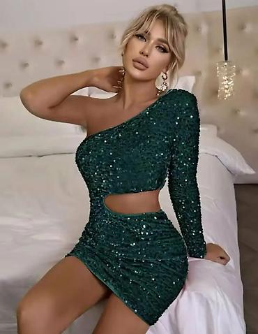 Šljokičasta mini haljina na jedno rame