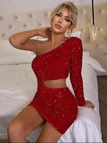 Ženska svečana haljina – asimetrični mini model Prodajem prelepu haljinu, jednom nošenu, u odličnom stanju. Materijal prijatan i lagan, lepo stoji uz telo. Veličina odgovara S/M. Idealna za mature...