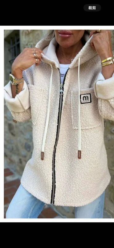 JednobojniŽenska topla jakna/dukserica od mekog „teddy” flisa sa kapuljačom.