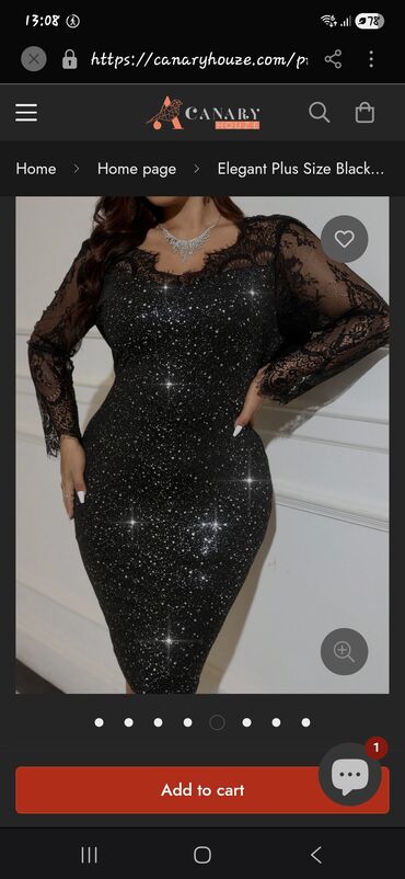 Elegantna crna večernja haljina za punije dame - Kroj: uska, midi dužina, olovka-silueta koja prati liniju tela; mali šlic pozadi radi lakšeg kretanja - Materijal: sjajan, štras/šljokice efekat pr...