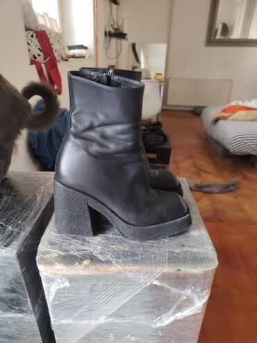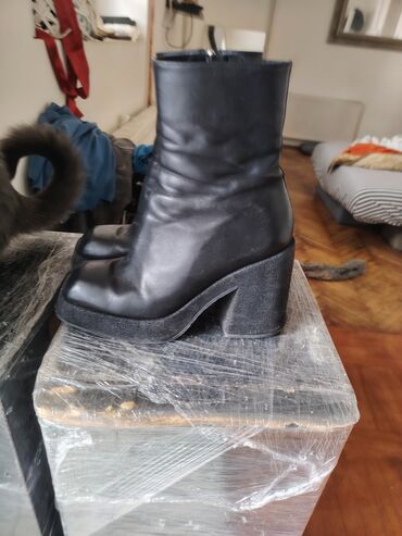 New Trend - Postavljene gležnjače od veštačkog materijala sa đonom koji se ne kliza. Možda jednom obuvene, kao nove. Br. 41. Unutrašnje gazište 27cm, visina pete je 5cm.