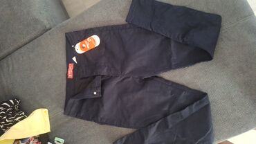 - Detalji: klasičan kroj sa rajsferšlusom i dugmetom, pet džepova, etikete i brendirani bedževi