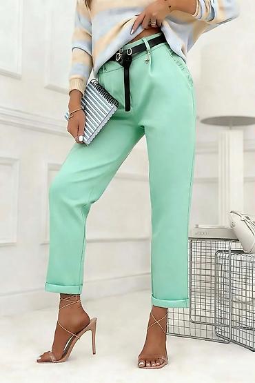 Ženske elegantne pantalone sa kaišem - Kroj: ravne nogavice sa mogućnošću podvrtanja poruba; visina struka srednja - Materijal: meka, glatka tkanina sa blagom elastičnošću za udobnost i lepo prija...