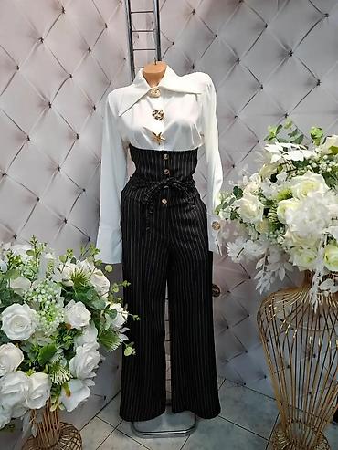 Ženske pantalone sa visokim strukom – prugasti model. Pantalone 3900, a košulja 3600 din