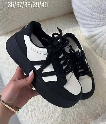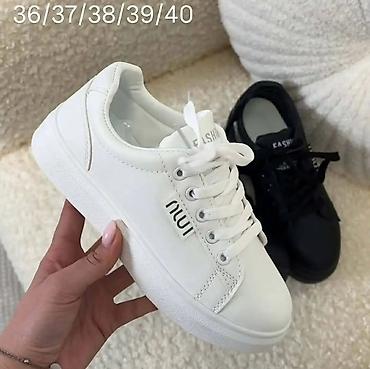 - Model 4: Minimalističke casual patike u beloj i crnoj varijanti, glatka površina sa diskretnim natpisom sa strane. Deblji, ravan đon i klasično pertlanje. Dostupne brojevi: 36, 37, 38, 39, 40.