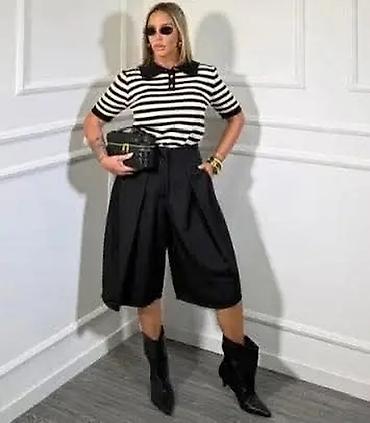 Ženske bermude sa visokim strukom i širokim nogavicama do ispod