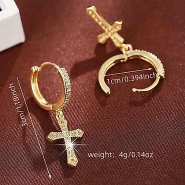 Zlatne minđuše sa krstićem – viseće, kružna alka sa ukrasima od