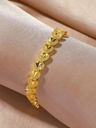 - Dizajn: povezani zlatni srcoliki segmenti sa teksturisanim rubom i glatkim, sjajnim središtem