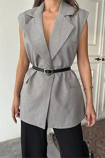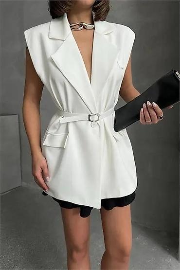 Ženski blejzer-prsluk bez rukava sa pojasom - Model: dugi prsluk u