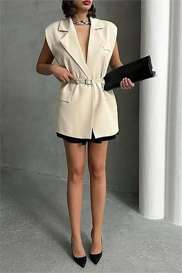 Ženski blejzer-prsluk bez rukava sa pojasom