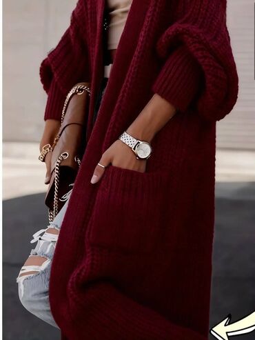 - Materijal: debelo, mekano pletivo sa izraženom teksturom