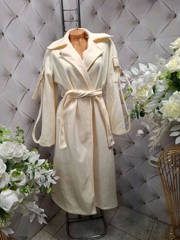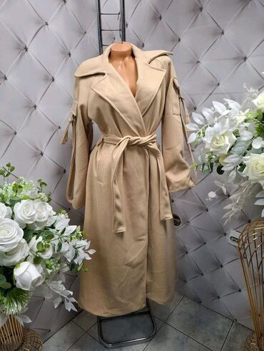 - Kroj: dugi kaput ravne linije, vezivanje oko struka remenom u istom materijalu za naglašenu siluetu