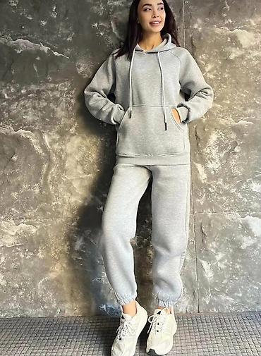 Damski komplet trenerke – dukserica sa rajsferšlusom i široke pantalone - Dvoslojni komplet: kratka dukserica sa kapuljačom i rajsferšlusom + pantalone ravnog kroja. - Materijal: meka, elastična p...