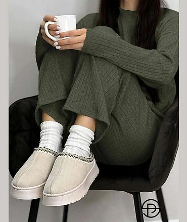 - Materijal: meko, toplo i elastično rebrasto pletivo prijatno na koži, pogodno za celodnevno nošenje i lounging.