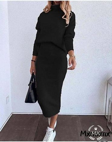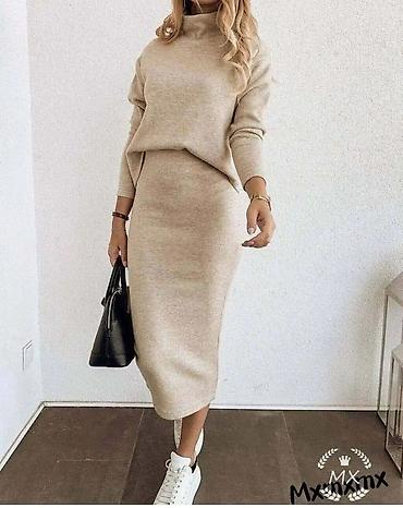 Damski dvodelni komplet – mekani pleteni duks i suknja midi dužine.