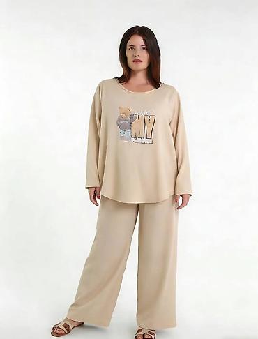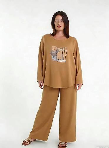 Dvoslojni ženski komplet za svakodnevno nošenje – gornji deo i pantalone širokog kroja.