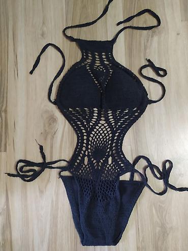 Jednodelni kupaći kostim – tamnoplavi, veličina XS (oznaka na slici: XS-34) - Dizajn: klasičan jednodelni model sa halter vezivanjem oko vrata i zatvaranjem na leđima; blago otvoren izrez na leđim...