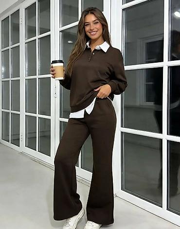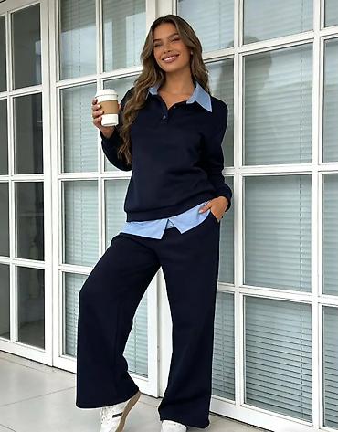 Ženski komplet – dukserica + široke pantalone - Model: dvoslojni