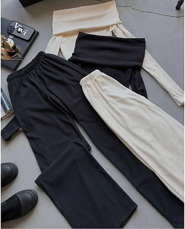 - Set se sastoji od dva dela: gornji deo (off-shoulder) + donji deo (pantalone).