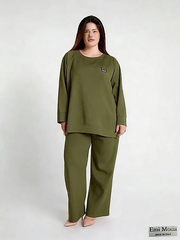 Dva‑dela ženski komplet – dukserica i pantalone sa širokim nogavicama - Materijal: meka, glatka duks tkanina prijatna za kožu, srednje debljine. - Gornji deo: klasična dukserica sa okruglim izrezo...
