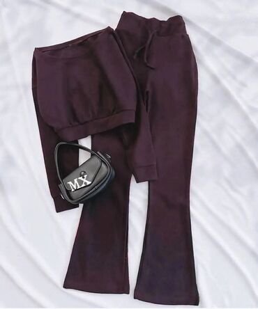 Ženski komplet trenerke – duks i donji deo - Dizajn: oversize duks sa spuštenim ramenima i okruglim izrezom + ravne pantalone sa elastičnim strukom i učkurom, džepovi sa strane, blago sužene nogav...